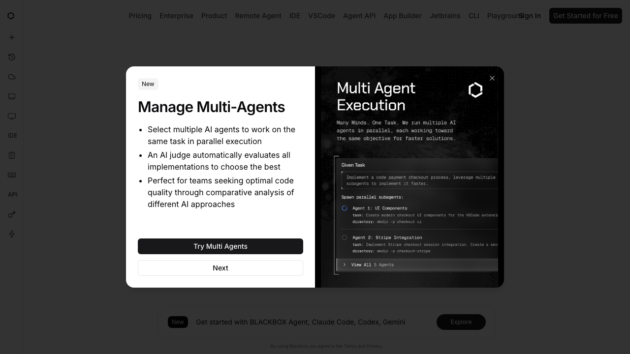 Blackbox AI is an AI code generation and search tool that provides code generation capabilities and ability to search open-source code repositories. Developers frequently need to understand how to implement functionality, find code examples, or see how similar problems have been solved. Searching GitHub and other repositories manually is time-consuming, and finding good examples requires significant effort. Blackbox AI accelerates this by providing AI-powered code search and generation, allowing developers to find relevant code examples quickly or generate implementations. The tool integrates into development environments, providing code suggestions and search capabilities inline during coding.