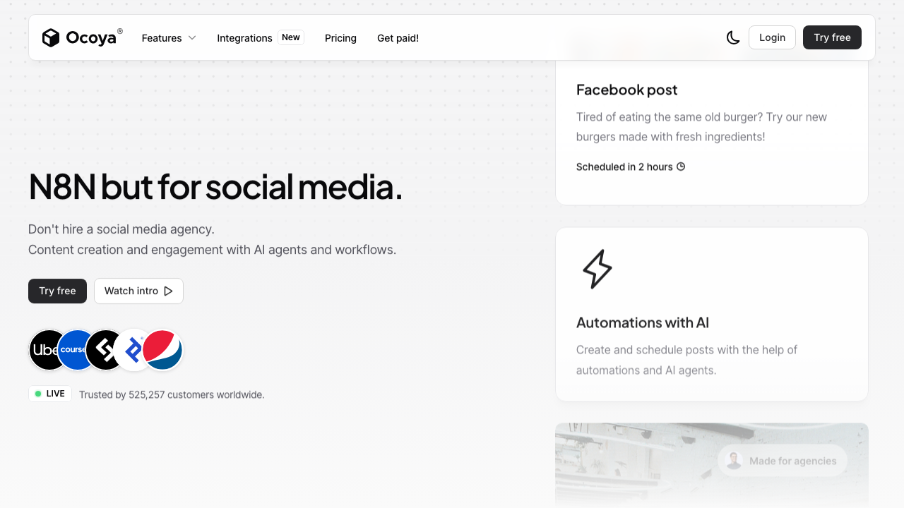 Ocoya is a social media management and content creation platform powered by AI. Managing social media across platforms requires consistent content creation. Ocoya enables generating social media content, scheduling posts, and managing presence across platforms. The platform generates content ideas, creates posts, and schedules publishing. For businesses and creators, Ocoya provides social media automation.